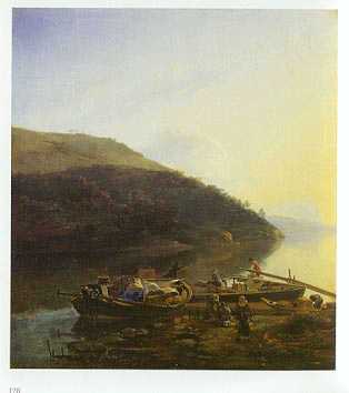 Below: Landscape with Mountains, and Boats by a Lake, c. 1666. Coll Otto Naumann.