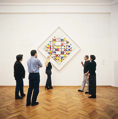 Bij de omschakeling van de gulden naar de Euro besloot de Nederlandsche Bank een zeer duur kado aan te schaffen voor het Gemeentemuseum : het schilderij Victory Boogie Woogie dat was ontstaan in New York City en nog in prive-bezit was. Het vormt het eindpunt van de hele ontwikkelingsgang die in het Haagse Gemeentemuseum van stap tot stap te volgen is.